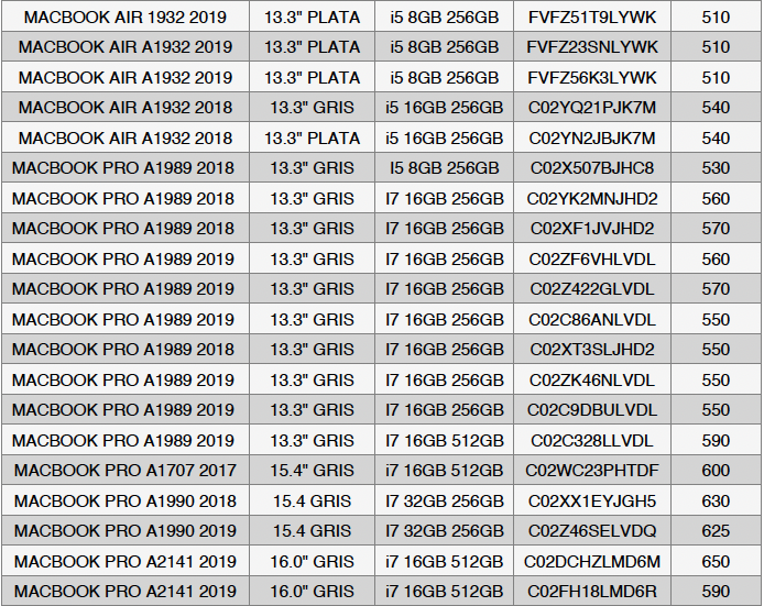 Aquí un exememple dels equips Apple que tením actualment a setembre de 2025: (preus sense IVA)